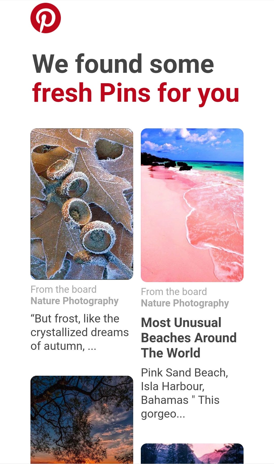At Pinterest, we launched Related Pins in 2013. For Pinterest, we did not have a revenue model at the time, so tactics around incentives and people do not make as much sense. One thing we did instead was use notifications to drive feature/product fit. Once this algorithm was developed, after you Pinned something, we could now email you more Pins you might like that are related to that Pin. These emails were very successful.