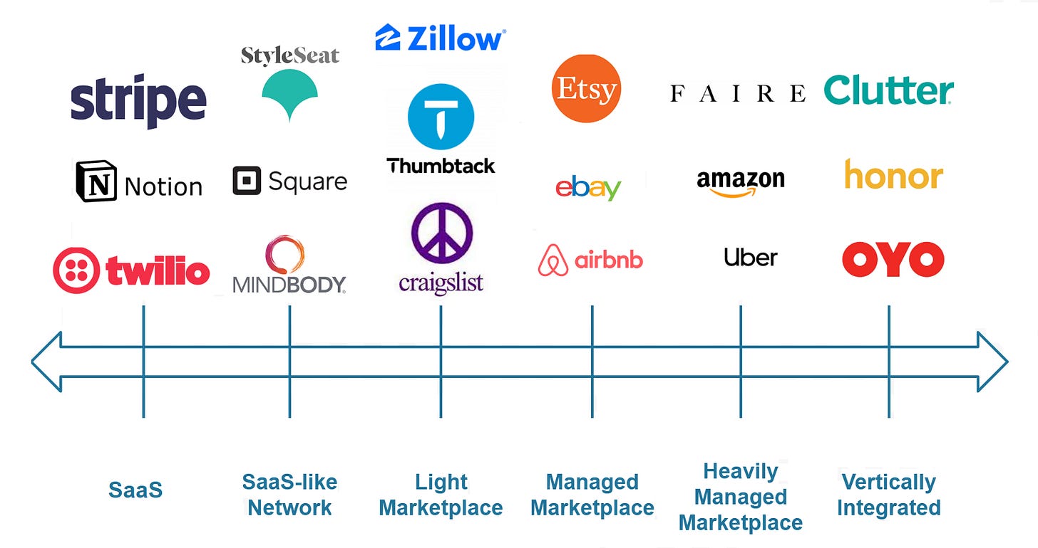Casey’s first sequencing business models essay talked about the transition from a SaaS business model to marketplace business model, and why it’s so difficult. In this essay, we’ll go deeper into the gradients of marketplace models that a company can sequence to, and as a follow up, we will do the same for platforms. Models on this spectrum may seem similar to each other at first blush. Especially adjacent ones. But sequencing between models is always hard, and failing to appreciate the practical differences between them makes executing that transition even harder. If the previous essay was about the organization, this essay is more about the roadmap.