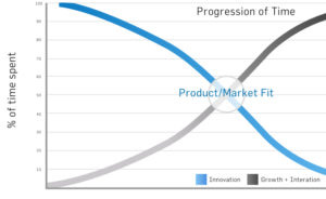 I have graphed the rollercoaster of what that looks like below around the key milestone of product/market fit.